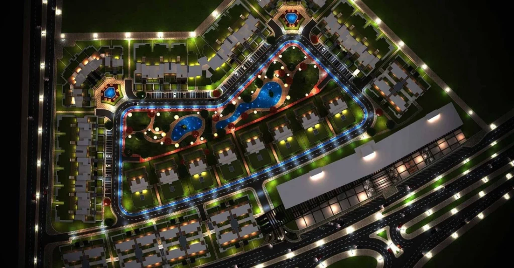 The project spans an area of 33,000 acres, with spaces allocated for residential service areas and vast green spaces to provide a suitable environment for residents.